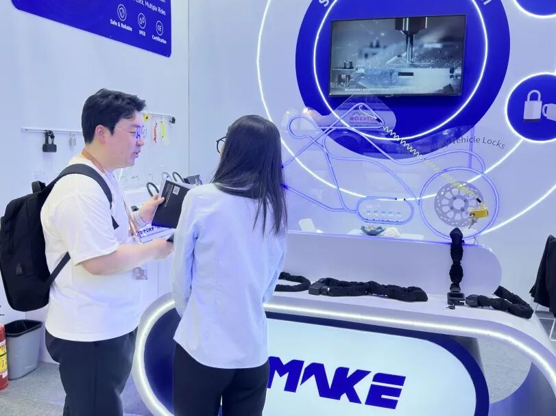 两大展区同步绽放,MAKE品牌闪耀全场。观展者纷纷驻足咨询锁具信息、体验科技解锁、畅聊市场机遇等。现场互动热烈,掀起阵阵热潮。