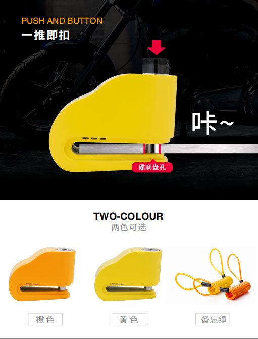 目前市场上碟刹锁众多,碟刹锁的质量参差不齐,因此在选择碟刹锁时一定要选择品牌有保证、质量安全可靠的碟刹锁。作为锁具制造商,下面星空电子将为大家介绍一款安全方便的碟刹锁,让您的“小摩托”更加安全,防止被盗!