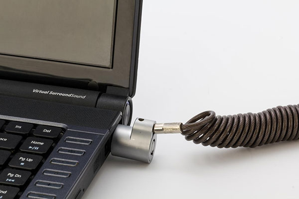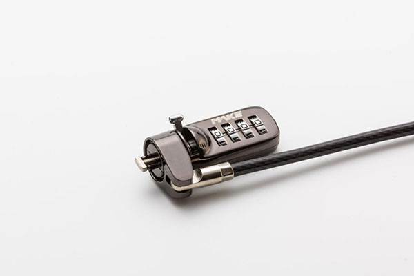 电脑锁的原理十分简单,即一端插入笔记本电脑侧面的锁孔里,另一端则缠绕在难以移动的固定物体上,这样就能达到基本的防盗需求。这种防盗锁有的是用钥匙才能开,而有的就必须要输入密码才能把它拿下来,既方便又安全。
