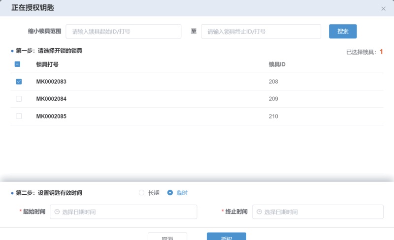 将钥匙长期授权给不同角色使用,数字化管理钥匙及其使用者,填补箱锁分离无人为管控的安全漏洞。