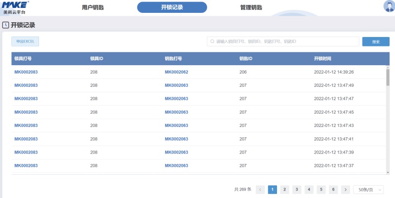 查询关锁记录锁具每一次开锁相关记录,包括钥匙、时间、锁具等,会实时传至后台,便于管理者查询和追溯谁开锁、什么时间开锁、开哪把锁,及时降低ATM机安全风险。